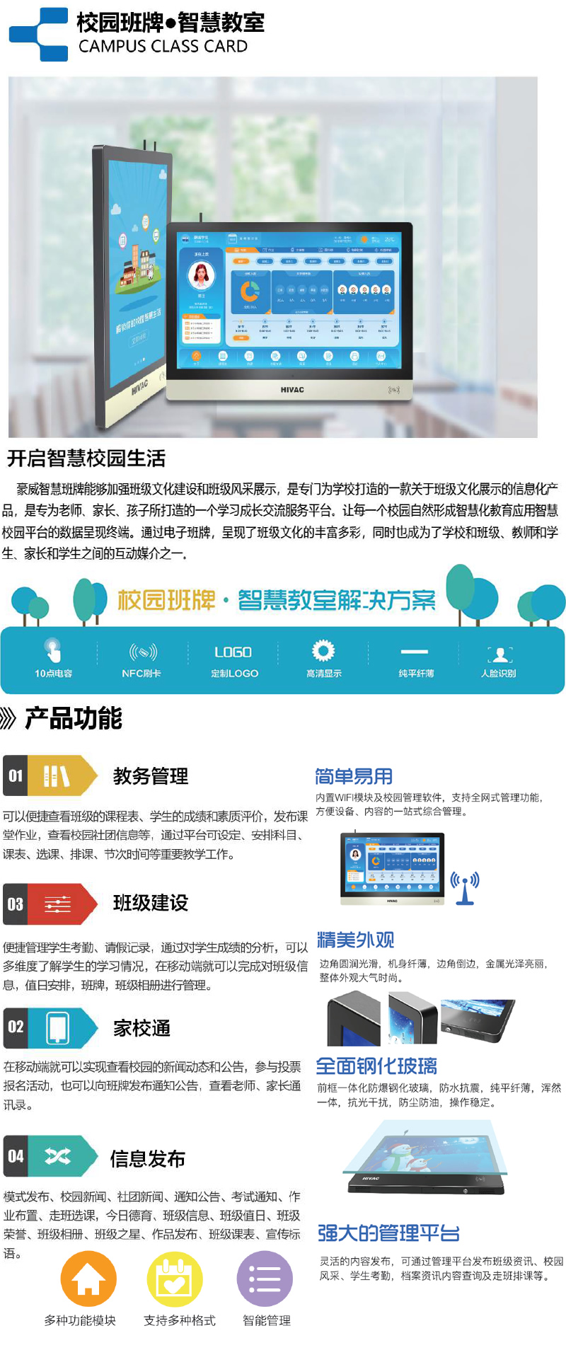 ■  學籍管理、教師管理、班級管理、考勤管理、課表管理、事務審批、班牌管理等;